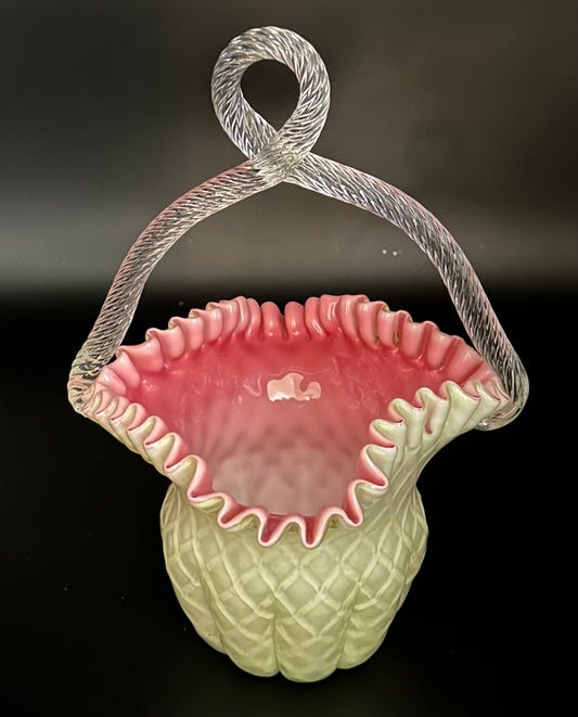 Antique Pink with Palest Green Fenton Art Glass Basket